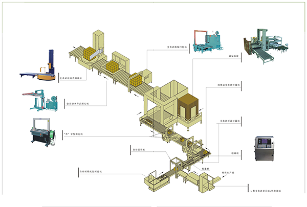 本流水線(xiàn)可根據(jù)您的要求,量身訂做一條合適您需求的全自動(dòng)包裝生產(chǎn)線(xiàn),從自動(dòng)開(kāi)箱→自動(dòng)裝箱→自動(dòng)稱(chēng)重→噴碼自動(dòng)I字型封箱→自動(dòng)四角邊封箱→自動(dòng)井字型捆扎→碼垛系統(tǒng)→自動(dòng)棧板打包→自動(dòng)水平捆扎自動(dòng)在線(xiàn)纏繞→完成。
